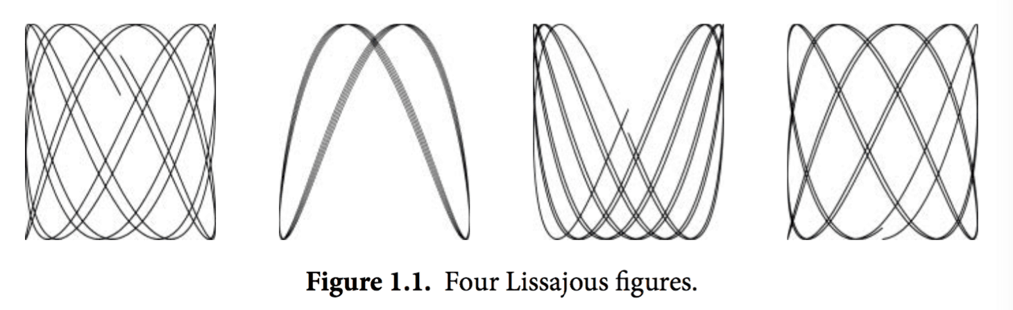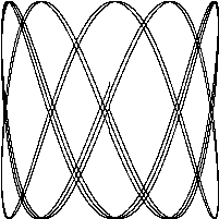 下面的程序会演示Go语言标准库里的image这个package的用法,我们会用这个包来生成一系列的bit-mapped图,然后将这些图片编码为一个GIF动画。我们生成的图形名字叫利萨如图形(Lissajous figures),这种效果是在1960年代的老电影里出现的一种视觉特效。它们是协振子在两个纬度上振动所产生的曲线,比如两个sin正弦波分别在x轴和y轴输入会产生的曲线。图1.1是这样的一个例子: