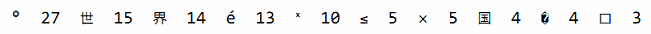 作为一个实验,我们用charcount程序对英文版原稿的字符进行了统计。虽然大部分是英语,但是也有一些非ASCII字符。下面是排名前10的非ASCII字符: